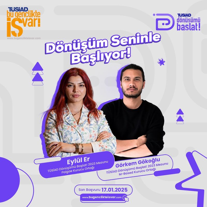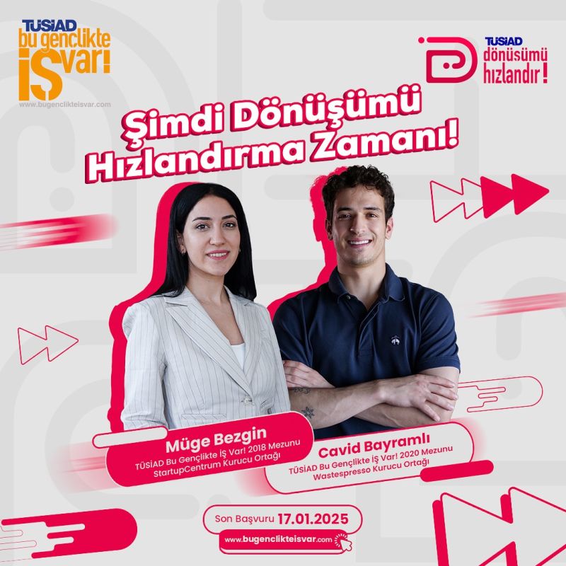 TÜSİAD Bu Gençlikte İŞ Var! girişimciliğe adım atarak eğitim almak ve iş fikrini geliştirmek isteyenler için Dönüşümü Başlat! programını, MVP geliştirme ve şirketleşme sürecindeki girişimlerini geliştirmek isteyenler için Dönüşümü Hızlandır! programını, girişimcilik yolculuğunda TÜSİAD ağı ile ilerlemek isteyen mezunları için ise Dönüşümü Sürdür! programını sunmaktadır.